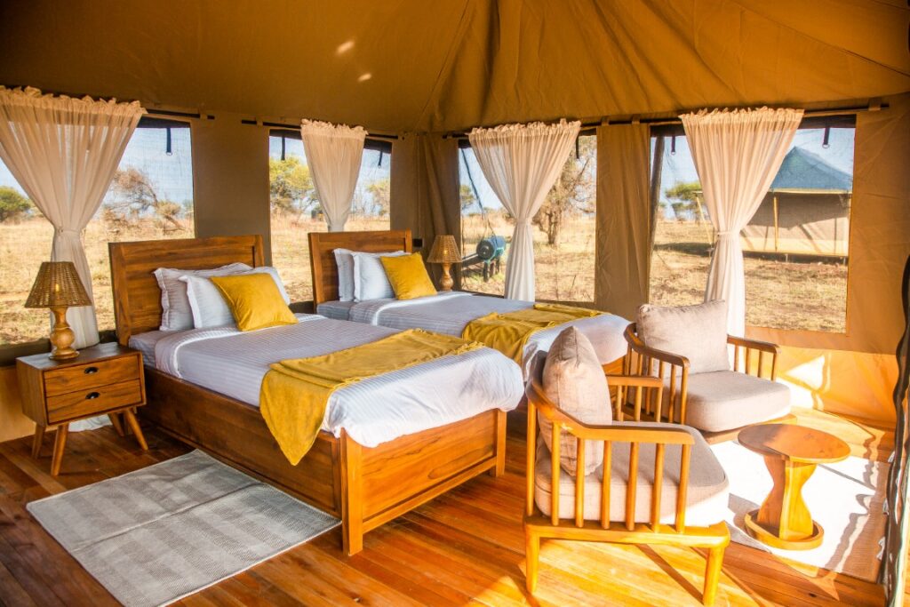 Our family room is perfect for families or groups, featuring two queen-sized beds and plenty of room for relaxation. It provides a comfortable and cozy space where families can rest and enjoy the stunning Serengeti views right from their private veranda.
